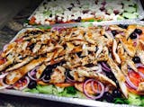 Tomatoes, cucumbers, onions, olives, and feta cheese in an olive oil dressing.